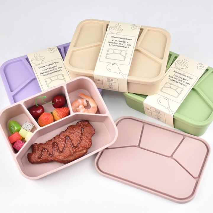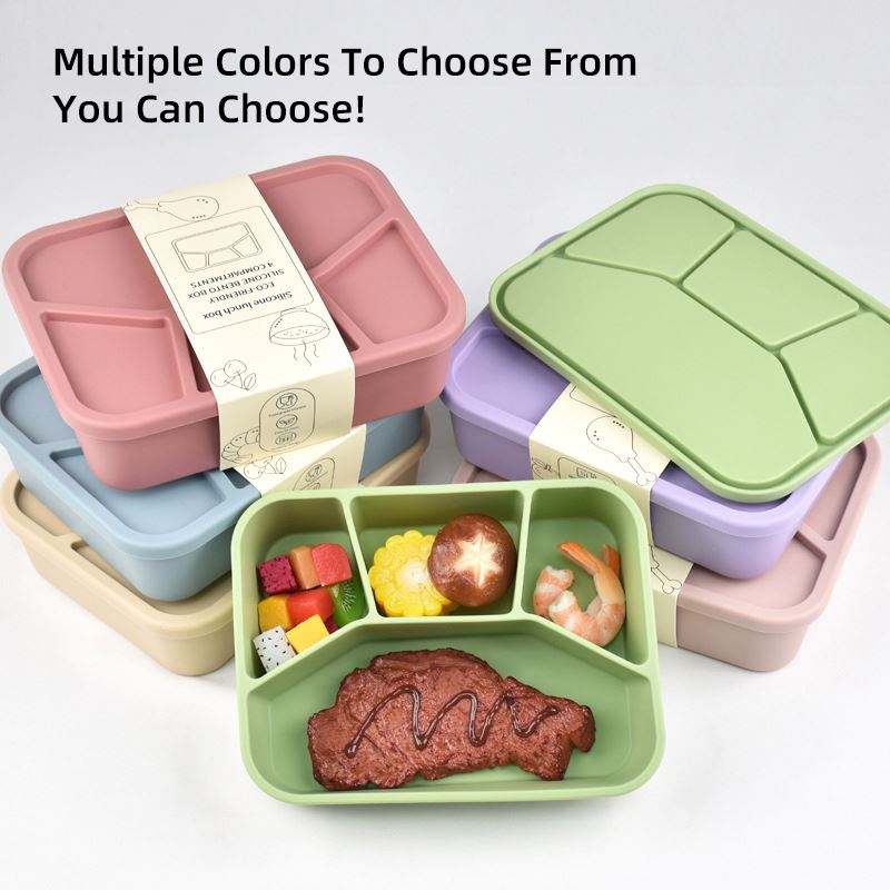 Bpa Free Custom Food Snack Storage Girls Silicone Lunch Box Bento Lunch Box for Kids