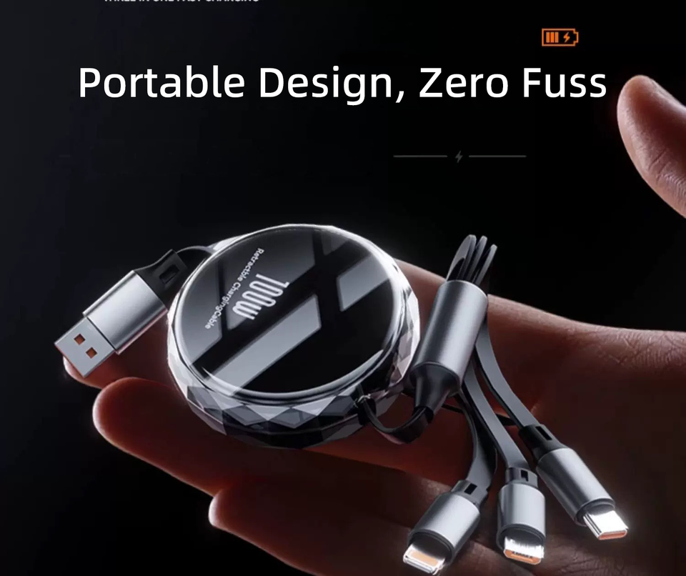 Cable USB Retráctil Ligero de 100W con Estilo de Soporte Personalizable, Carga Rápida de 3A, Tipo A y Tipo C, Cobre Puro
