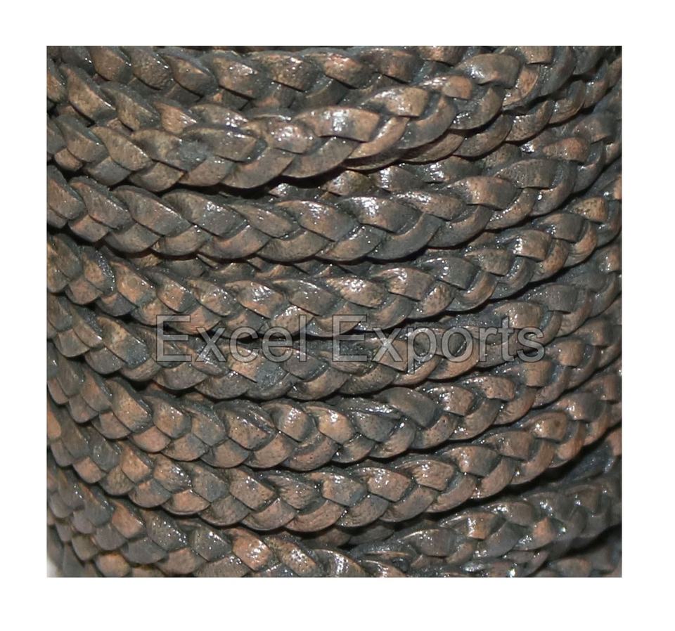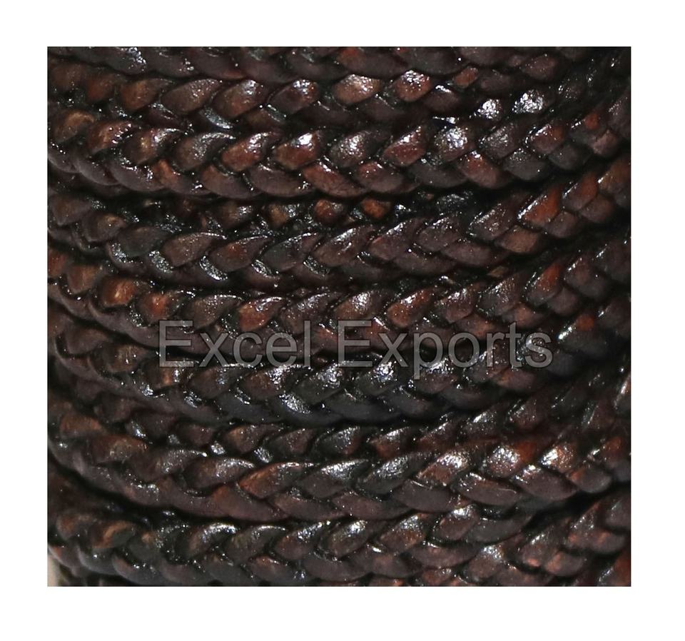 Cordón trenzado de cuero genuino de 4mm y 5mm de carbón para hacer joyas, bolso, cordones, trabajo artesanal y decoración