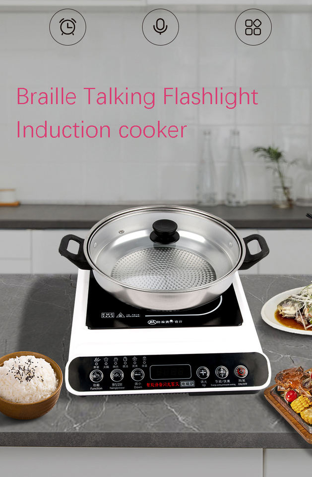 Placa de Inducción Táctil con Braille, Cocina de Inducción Eléctrica con Sensor Táctil, Ajuste de Temperatura, Ideal para Personas con Baja Visión