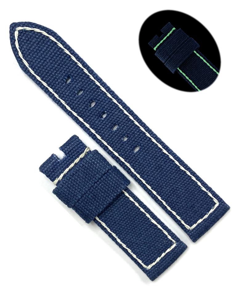 Correa de Reloj de Lona de Diseño de Marca, 24 mm, 3.8 mm de Grosor, Acolchada, Color Gris Espacial, Luminosa, con Costuras Españolas, Modelo 1950