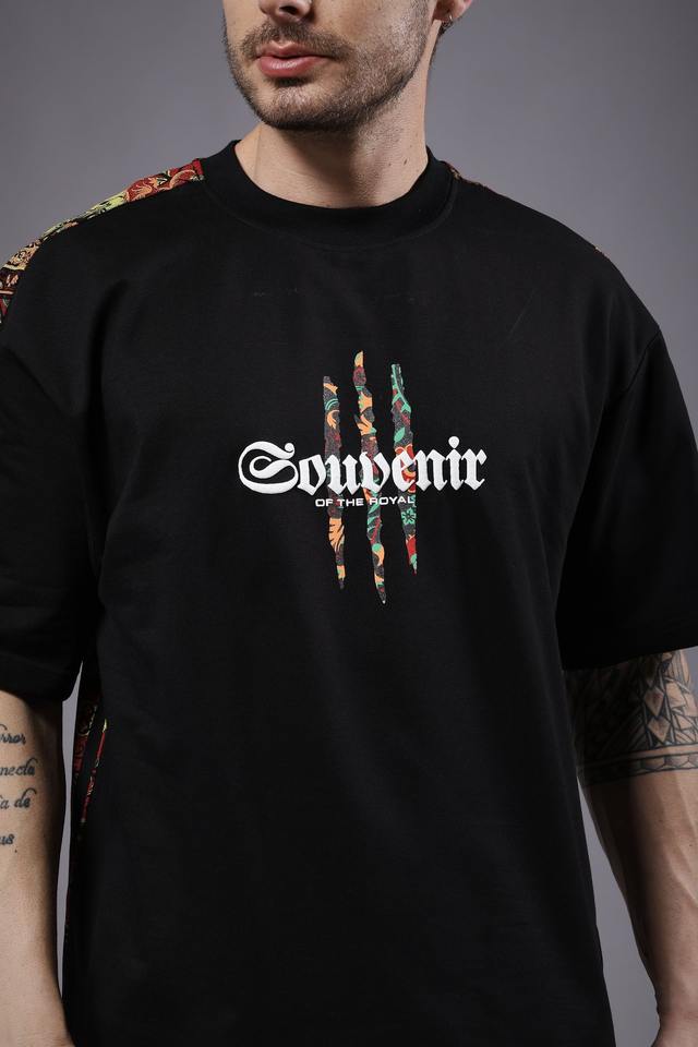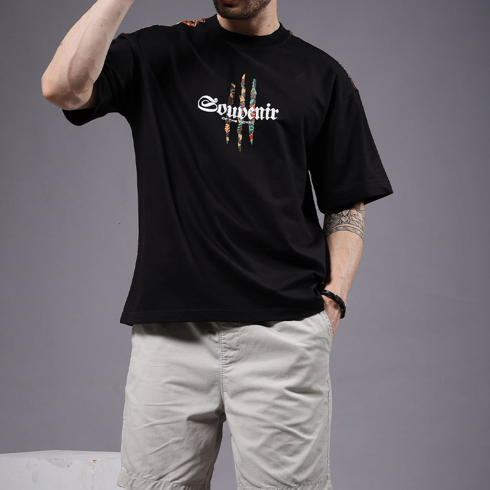Nombre del producto:Souvenir Puff Impreso Hombres Camiseta de Gran Tamaño Negro