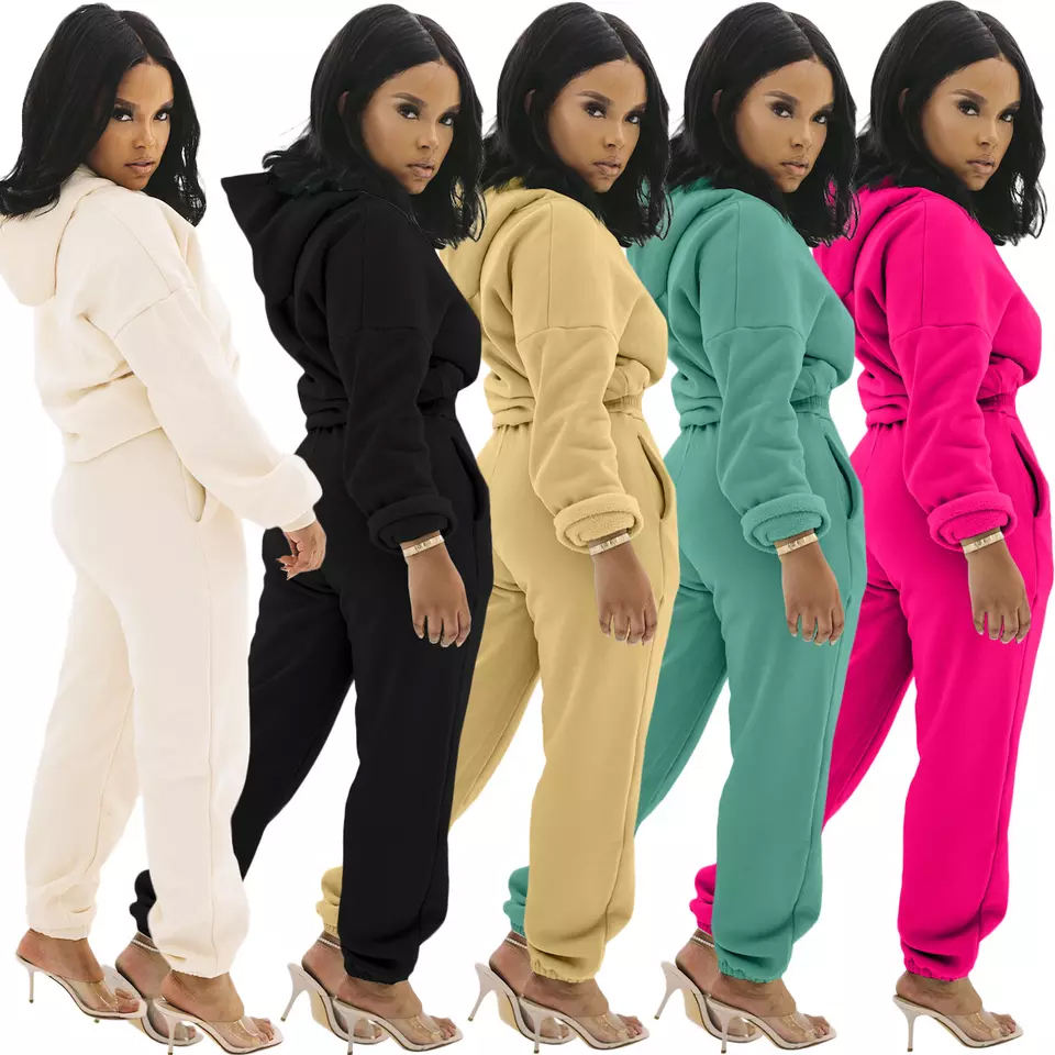 Conjunto de 2 Piezas Nuevo, Sudadera con Capucha y Pantalones Casuales, Cálidos, de Felpa, Color Sólido, Gruesos, de Invierno, 100% Algodón Ecológico para Mujer