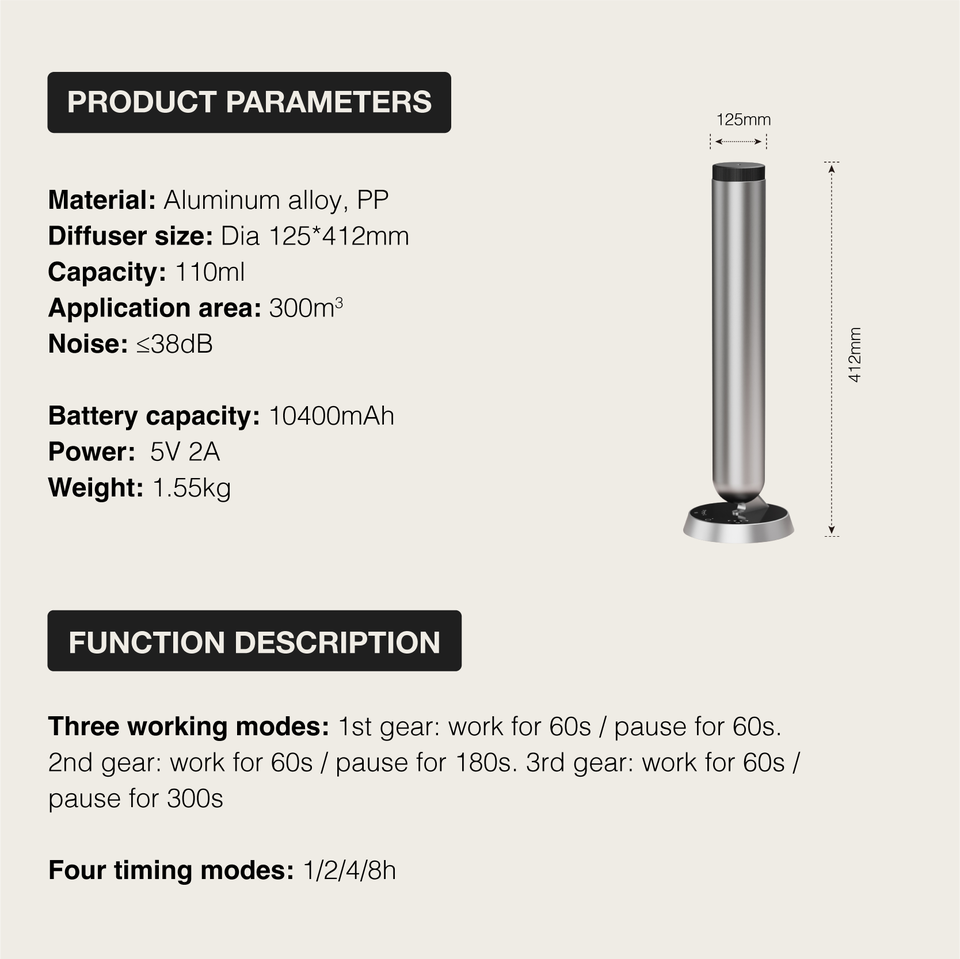 Característica:Respetuoso del medio ambiente, Recargable, Control remoto, Sin agua, Ambientador de aire, Gran capacidad, Luz LED, Ligero
