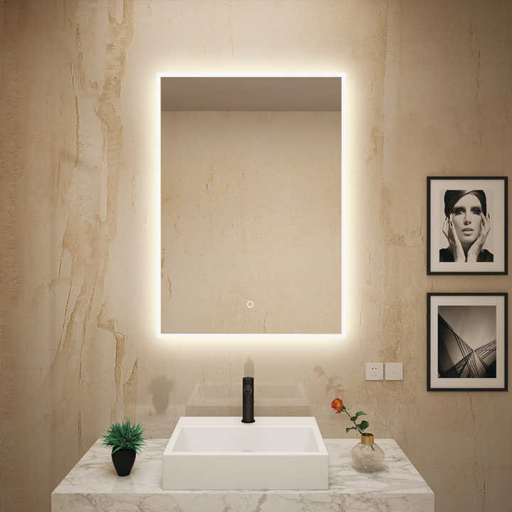Espejo de Hotel Moderno con Pantalla de Hora y Temperatura, Diseño Gráfico, Certificado CE, Garantía de 3 Años, Montado en la Pared