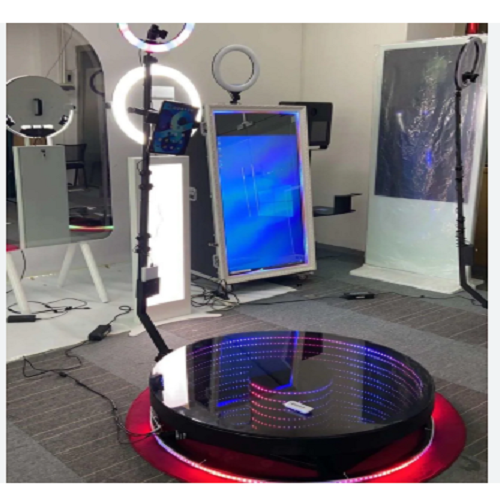 Cabina de Fotos Portátil 360° Nueva, con Cristal Templado, LED, Cámara Giratoria de Movimiento Lento, Plataforma para Selfies, OEM Industrial