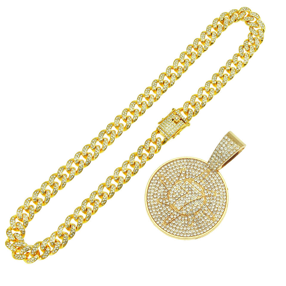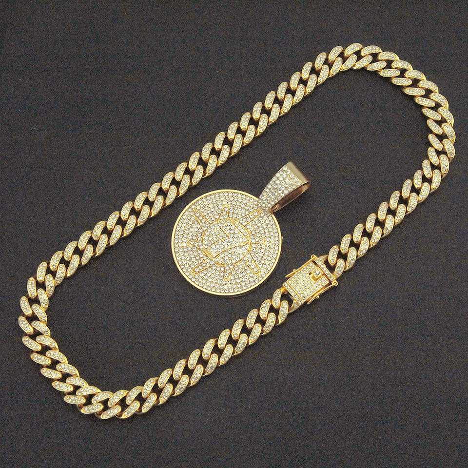 Collar con Colgante Redondo Número Siete, Diseño Único y Popular, Personalizable, Cadena Cubana Brillante Estilo Hiphop para Hombre