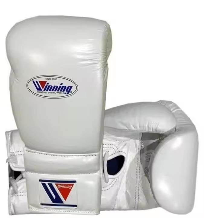 Nuevo conjunto de boxeo ganador con guantes de combate personalizados hechos de cuero genuino y totalmente personalizables con logotipo en blanco