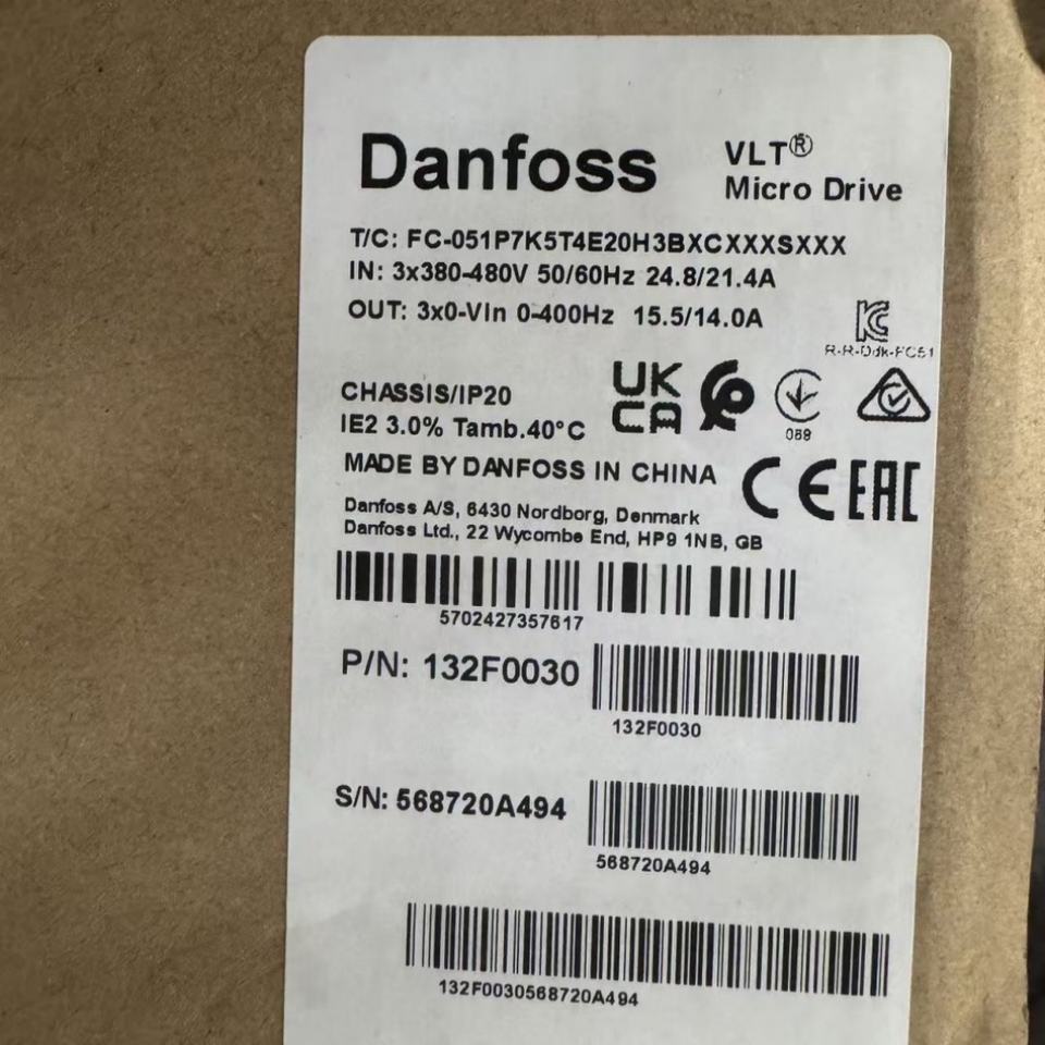 Nombre del producto:Danfoss VFD FC-302 55kW / 75HP Inversor Trifásico 380 - 480 VCA IP20