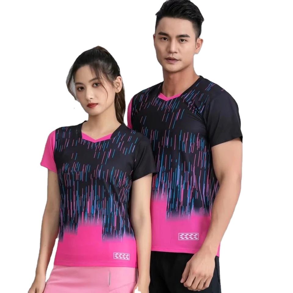 Uniformes de calidad de marca, ropa de tenis de mesa de secado rápido para hombres y mujeres, camiseta de manga corta de bádminton, ropa deportiva estampada
