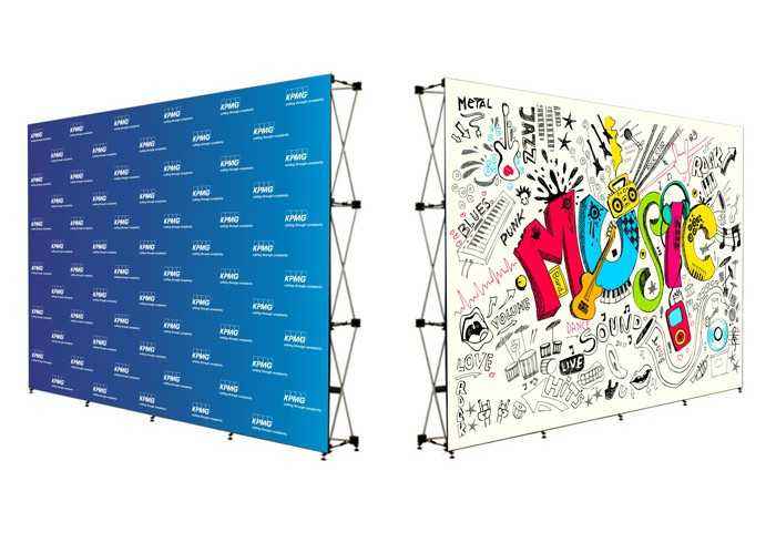 Banner de pared emergente impreso personalizado con solución de marca con soporte de exhibición portátil presenta su diseño