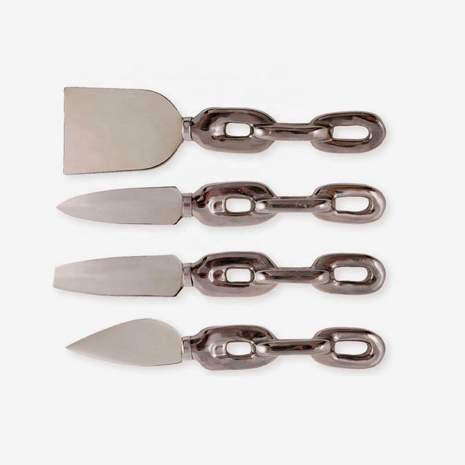 Juego de Cuchillos para Queso de Acero Inoxidable con Diseño de Cadena de Latón y Mango Plateado, Ecológico, Seguro para Alimentos, para Cocina y Hogar