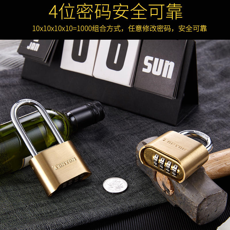 Candado de Combinación de Latón de Gran Tamaño con Grillete Extendido para Puerta de Almacén, Cuerpo Rectangular, Material de Cobre