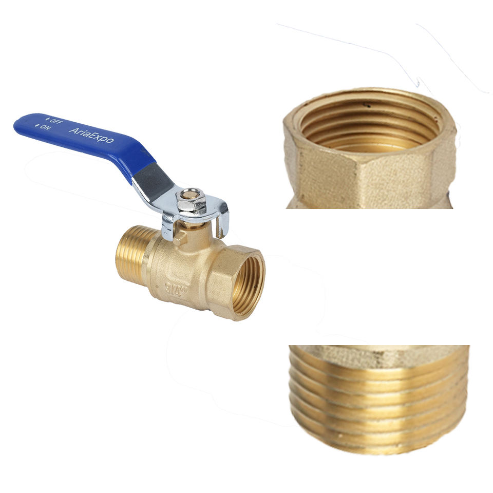 Válvula de bola de compresión PEX de latón forjado sin plomo, de paso completo, con rosca NPT hembra y macho, para cierre de líneas de agua, gas y aire en plomería.