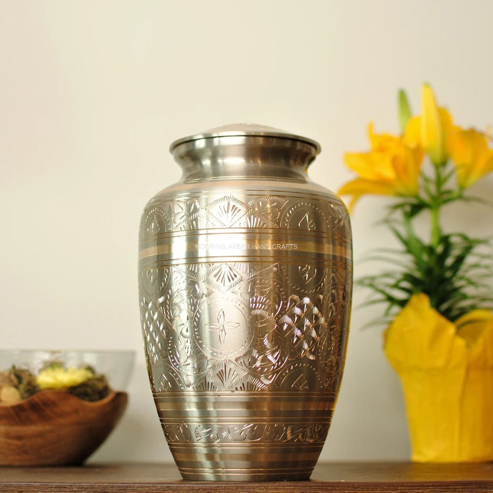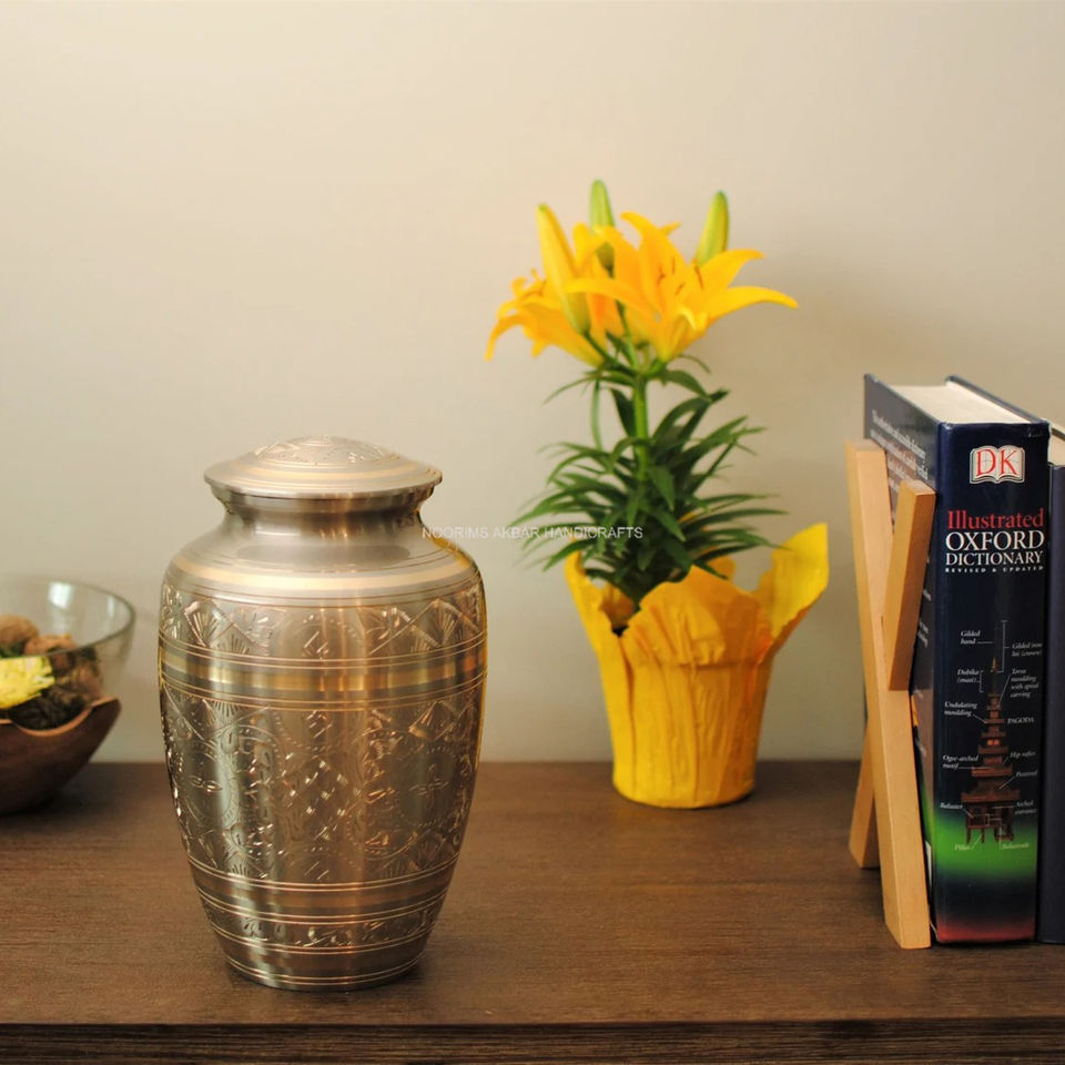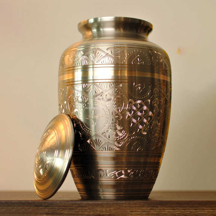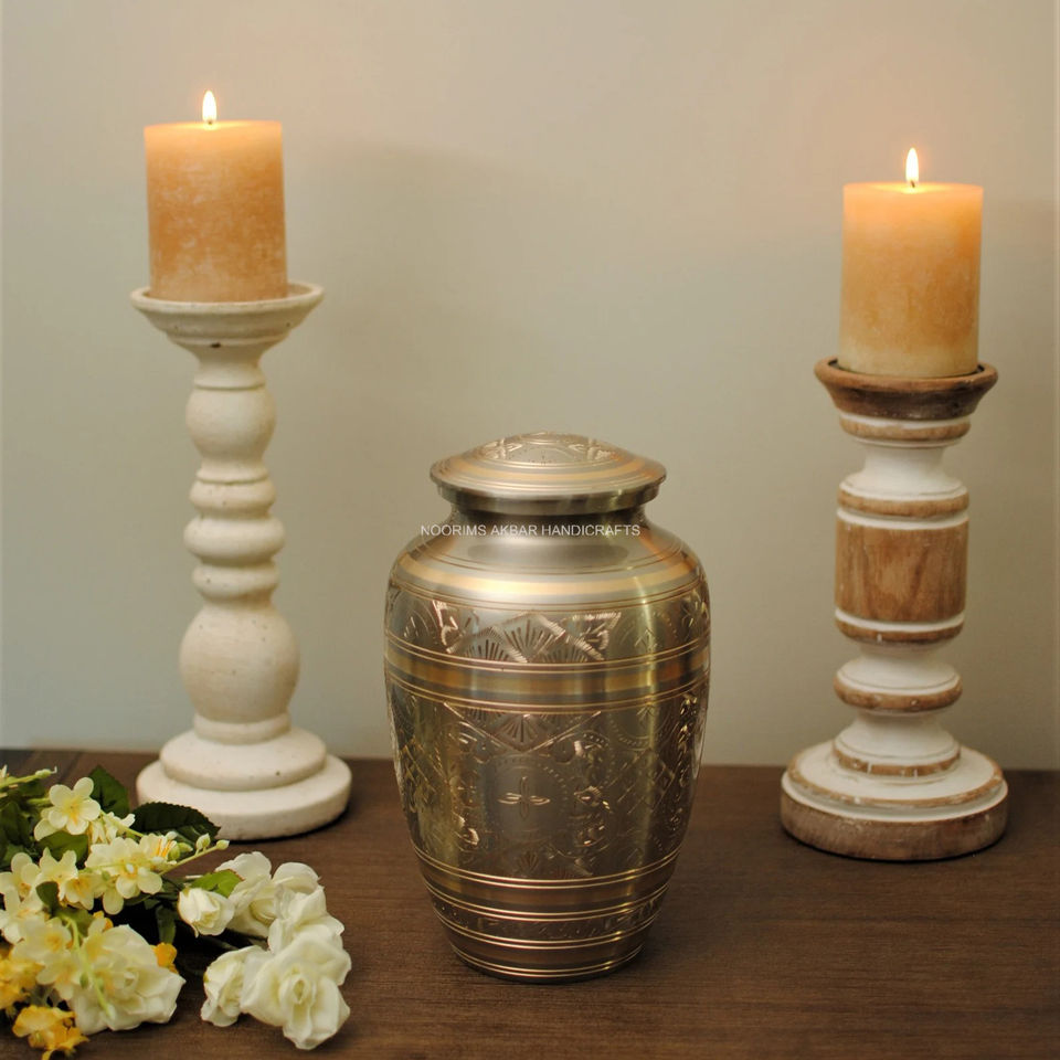 Urna de cremación de latón para cenizas humanas Urna funeraria para adultos Urna conmemorativa de latón hecha a mano Gran proveedor Fabricante Exportador