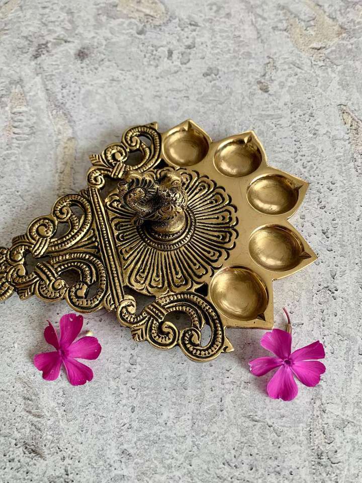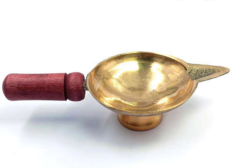 Lámpara de Aceite Diya Redonda de Latón, Deepak para Puja, Decoración de Bodas, Diseño Industrial Art Deco, Regalos de HF Industries
