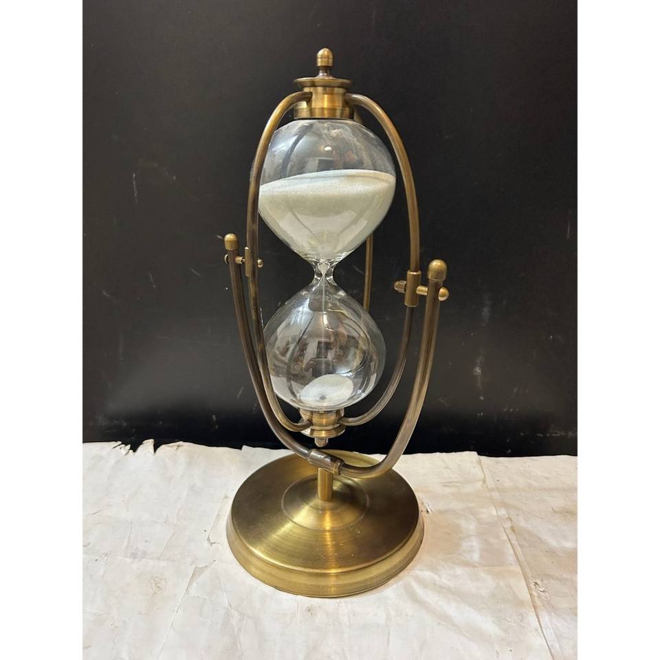 Reloj de arena de latón y vidrio que visualiza como el tiempo pasa a través del vidrio, lo que hace que los usuarios sean conscientes de cómo invierten su energía.