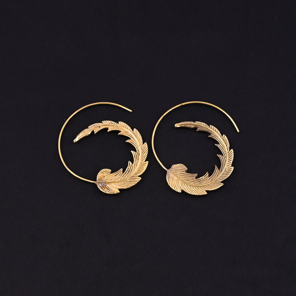 Imagen:Golden Feather Crescent Hoop Fashion Earrings