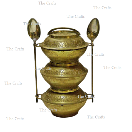 Lonchera Triple de Latón Dorado Pulido, Ecológica y Multifuncional, Tamaño Personalizado, Almacenamiento de Alimentos de Alta Calidad (1-3L)