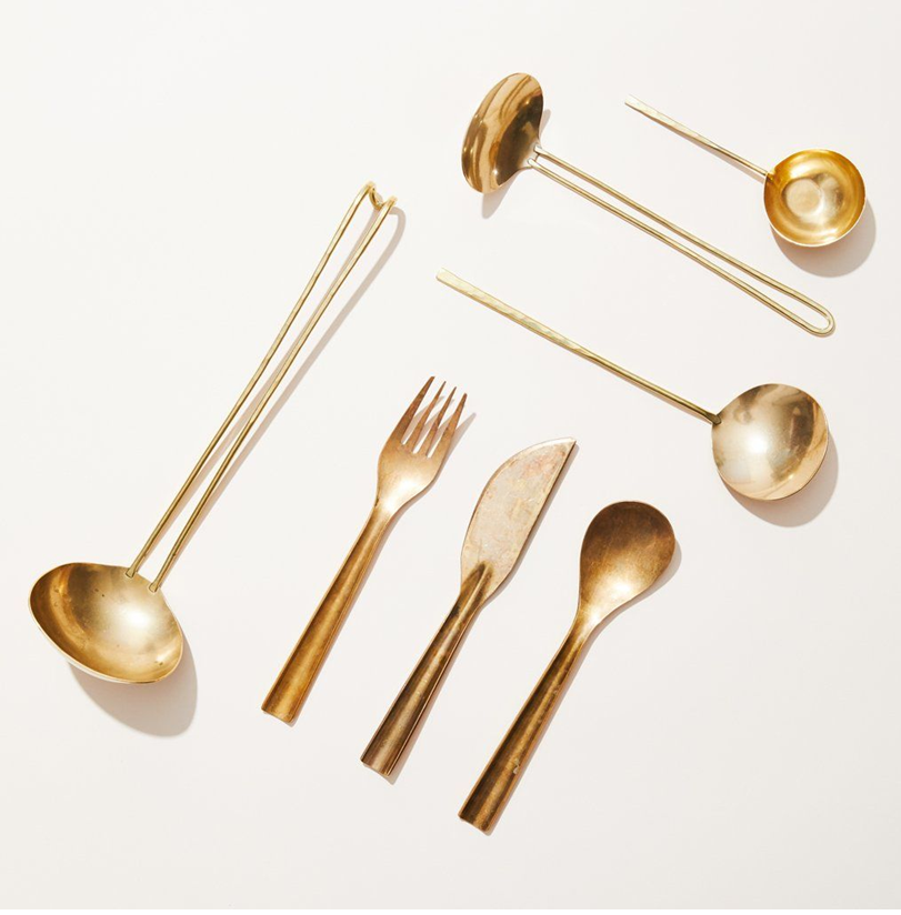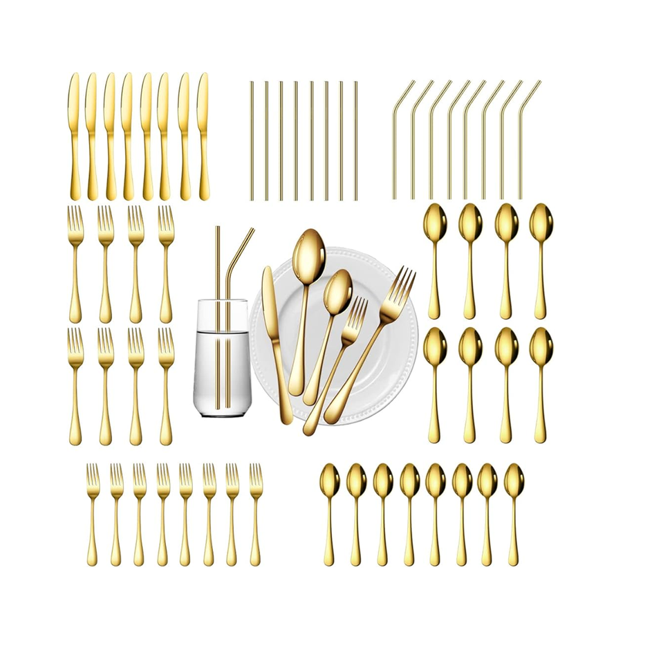 Juego de cubiertos de latón dorado brillante pulido de 25 piezas Cubiertos de acero con espejo para fiestas Juego de vajilla de bajo precio más exigente