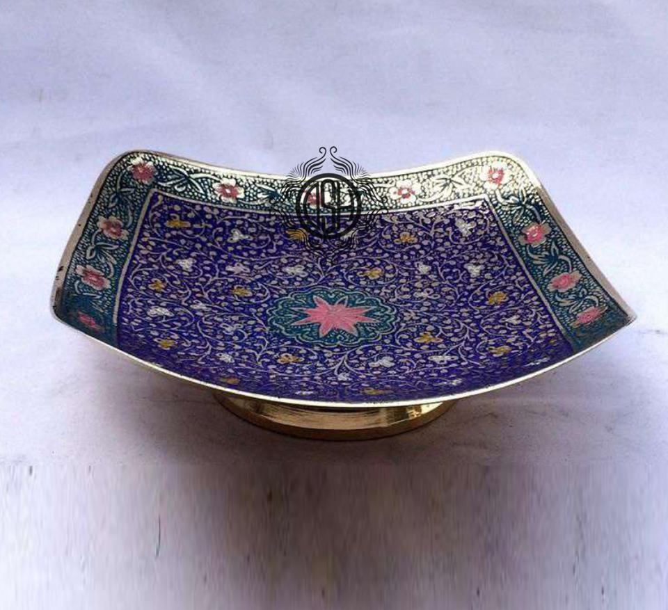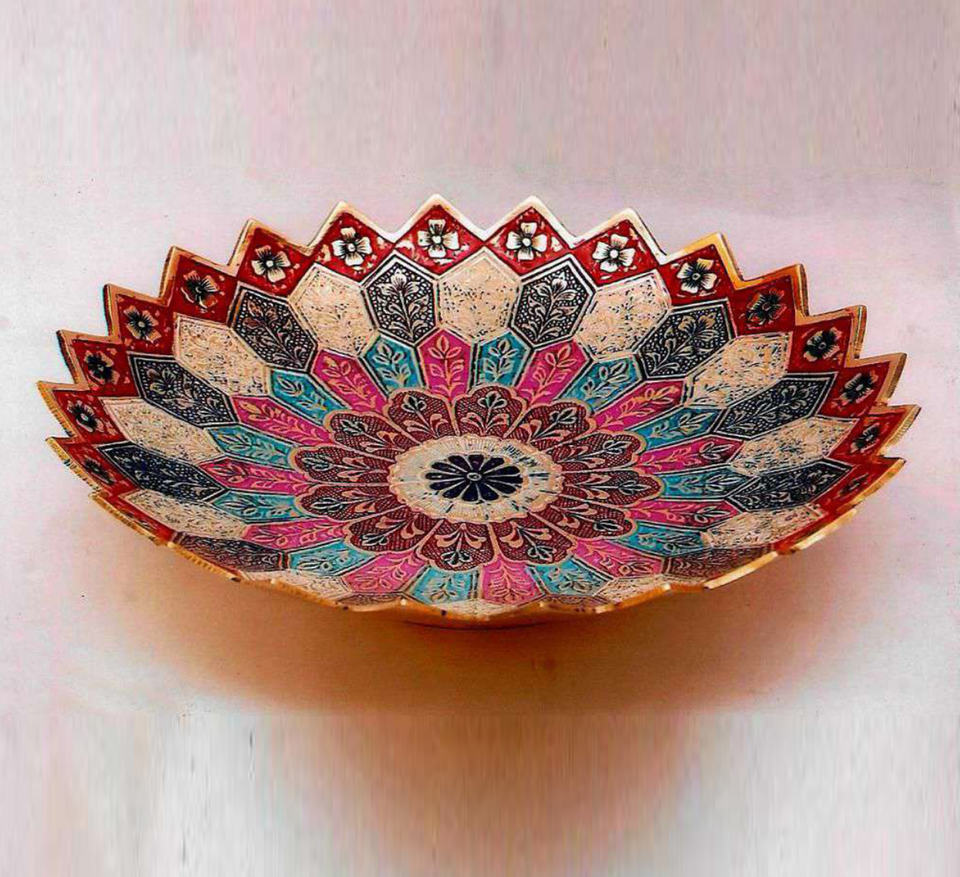 Cuenco multiusos decorativo con diseño de flores hecho a mano de latón para tazón de mesa para servir.