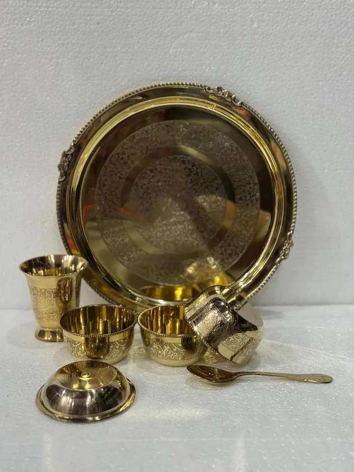 Juego de cocina de latón Juego de cena Kansa para el hogar Artículos de mesa de hotel Uso El último juego de cena de latón Cuenco diferente y cuchara y vajilla