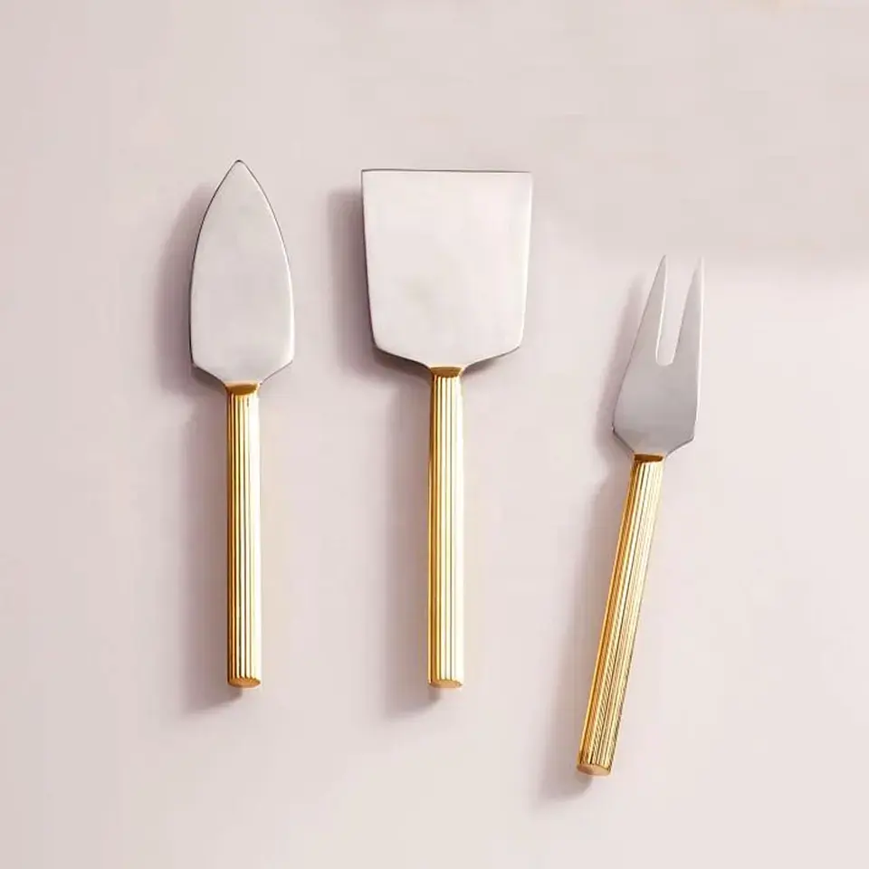 Juego de vajilla de queso con mango de nudo de latón en acero inoxidable con diseño elegante perfecto para accesorios de cocina elegantes