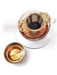 Juego de teñidor de taza de té de Metal de latón con mango de acero inoxidable Colador de té de acero inoxidable para bebidas calientes Cocina Uso en el hogar