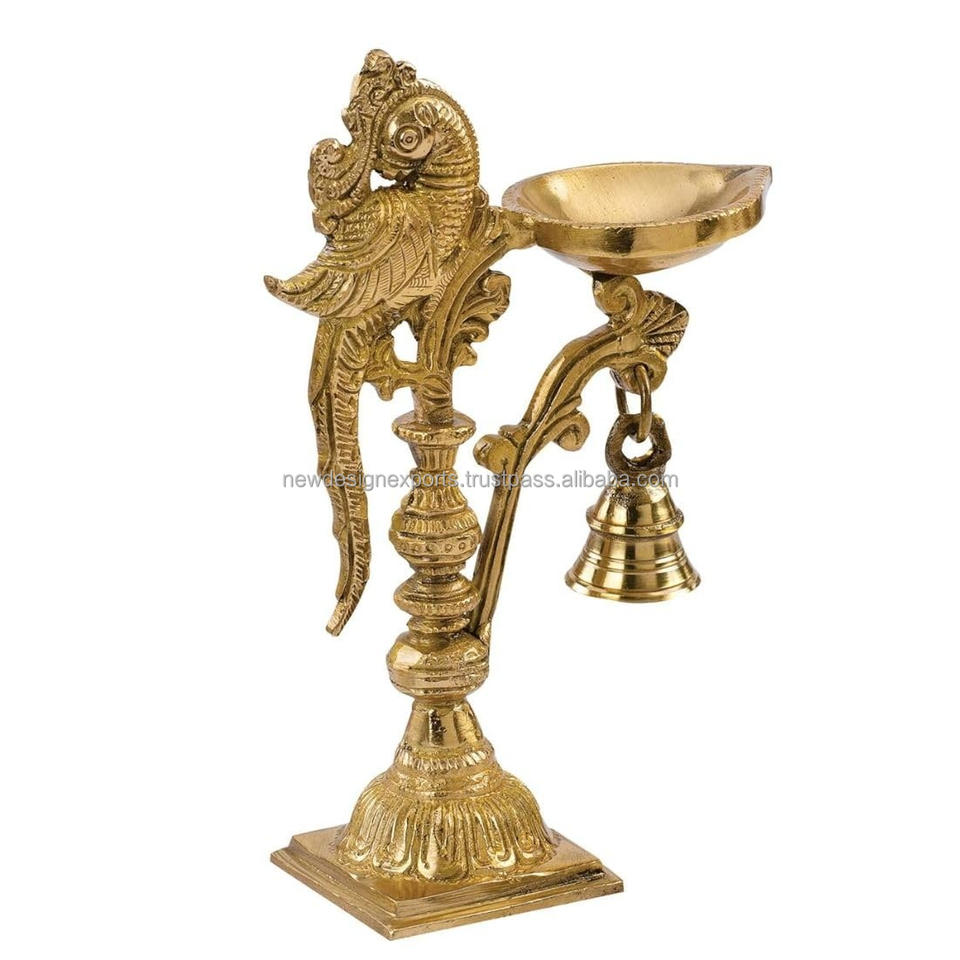Diya decorativo de pavo real de latón con campana tradicional diseño antiguo Deepak, decoración de mesa con soporte, regalo de Diwali para el hogar