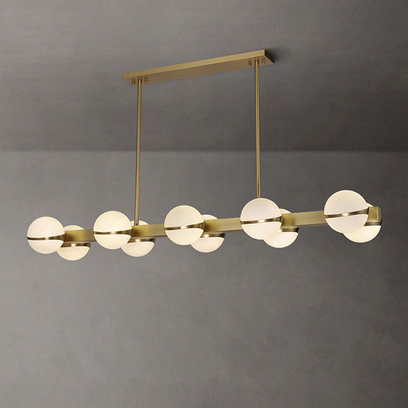 Lámpara colgante de latón, luz de techo de forma rectangular, iluminación de cocina, candelabro moderno de lujo para el hogar