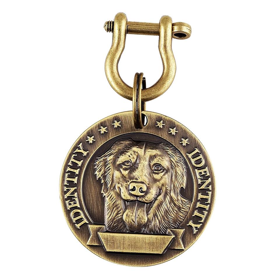 Antiguo mediano perro y cachorro redondo latón Collar etiqueta perro estampado encanto para cachorros y perros producto promocional para mascotas