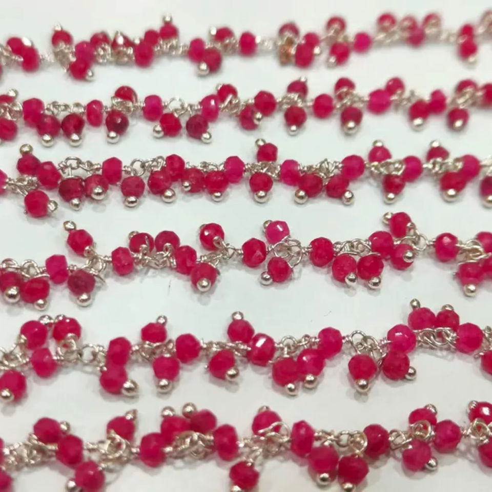 Cadenas de Latón con Cuentas Facetadas Redondas de 3mm, Envueltas en Alambre, para la Fabricación de Joyería, se Venden por Pie