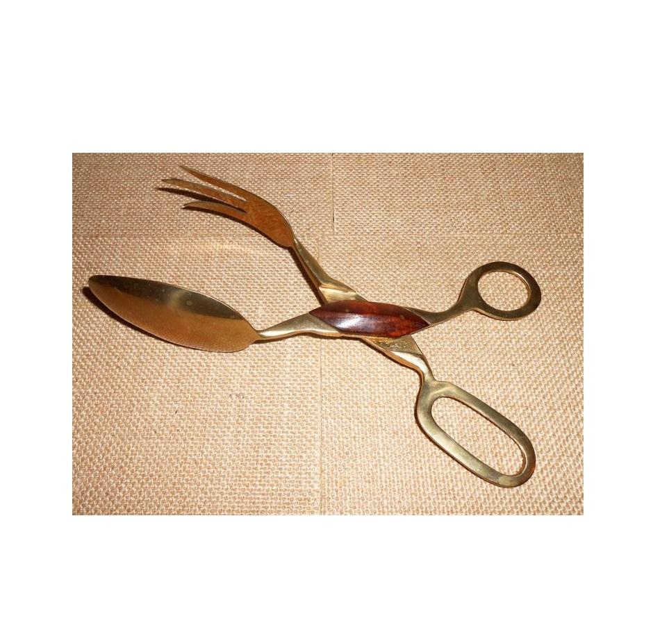 Cuchara de ensalada de latón Último juego Cuchara y tenedor de ensalada de latón dorado Acero espejado con mango de fundición al mejor precio