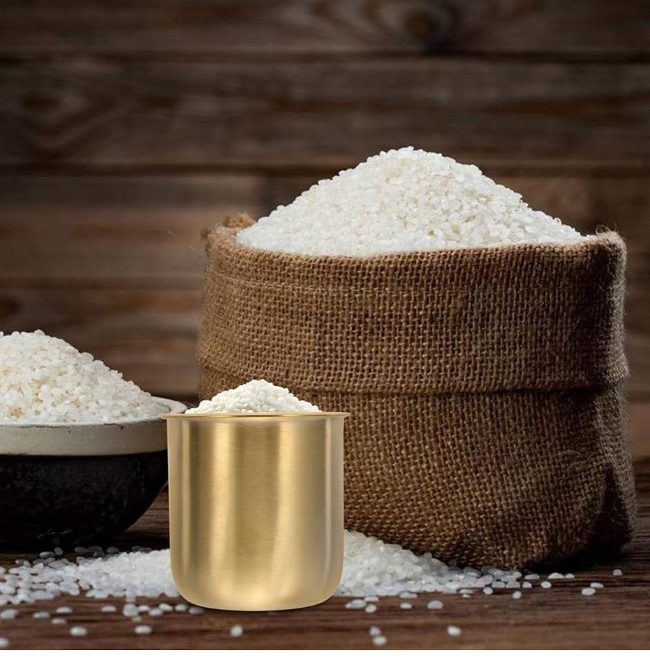 Taza medidora de arroz tradicional de latón Taza medidora de acero inoxidable Premium con cómodo