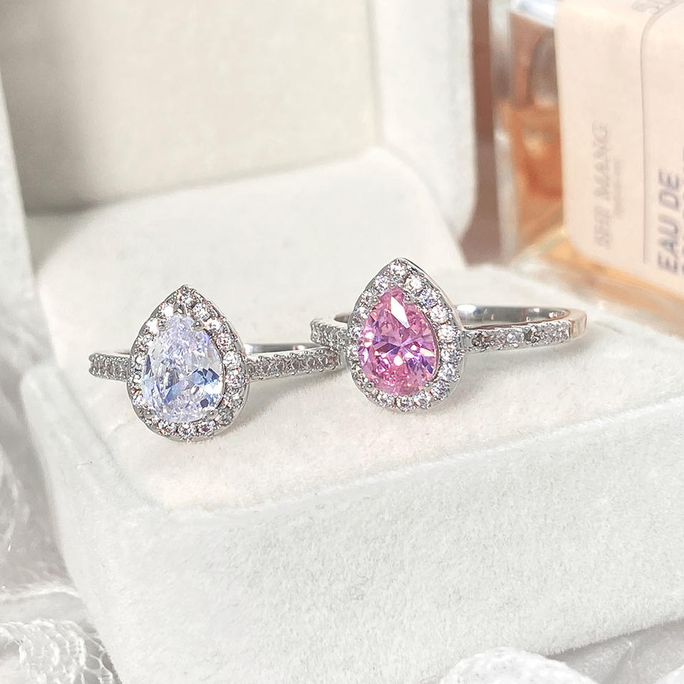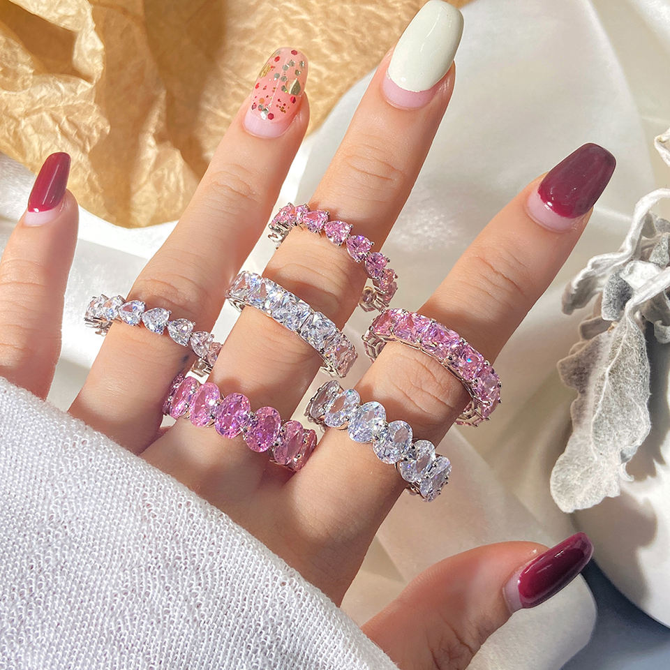 Colección de Anillos de Latón con Circonita Rosa de Moda para Mujer, Regalo de Boda, Chapado en Oro de 18K y Rodio