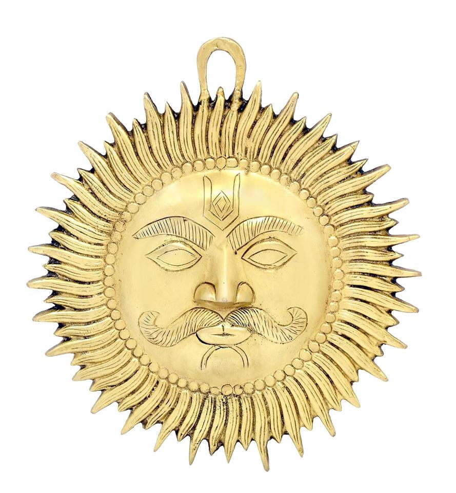 Adorno de Pared de Latón Dorado Brillante Hecho a Mano de Alta Calidad, Diseño Moderno de Dios Sol Vastu (Surya Bhagwan), Regalo Promocional