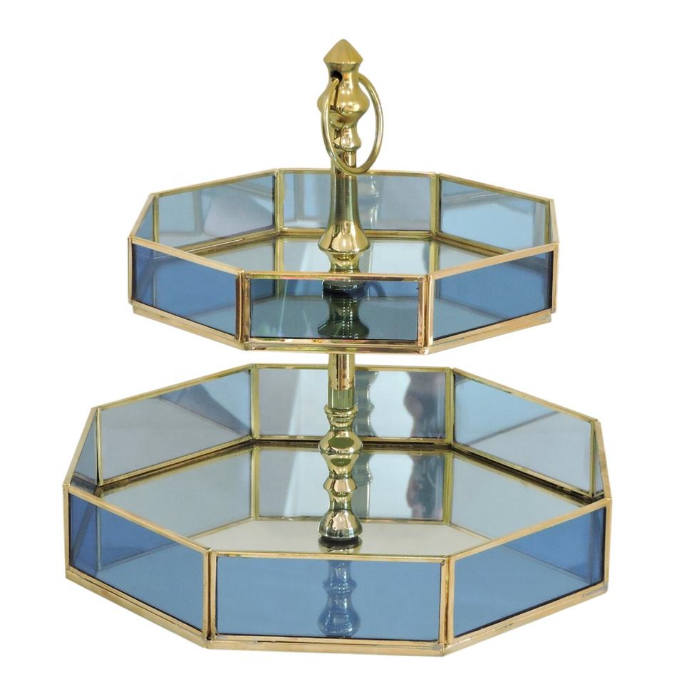 Soporte de latón y espejo para pastel, Soporte redondo para pastel de dos niveles, color dorado, para servir pasteles