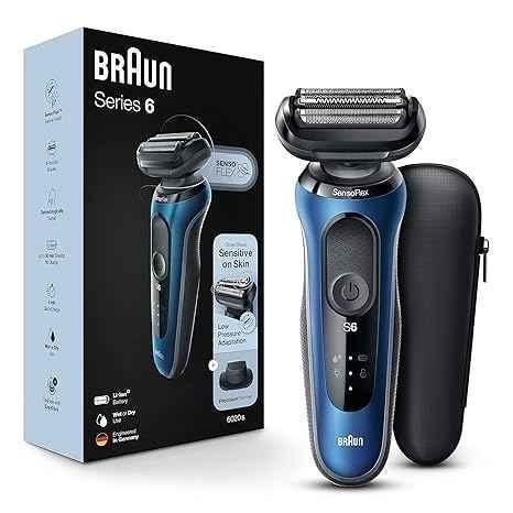 Braun Afeitadora Eléctrica para Hombre, Serie 6 6020s SensoFlex Afeitadora de Lámina Húmeda y Seca con Recortador de Barba de Precisión, Estuche de Viaje