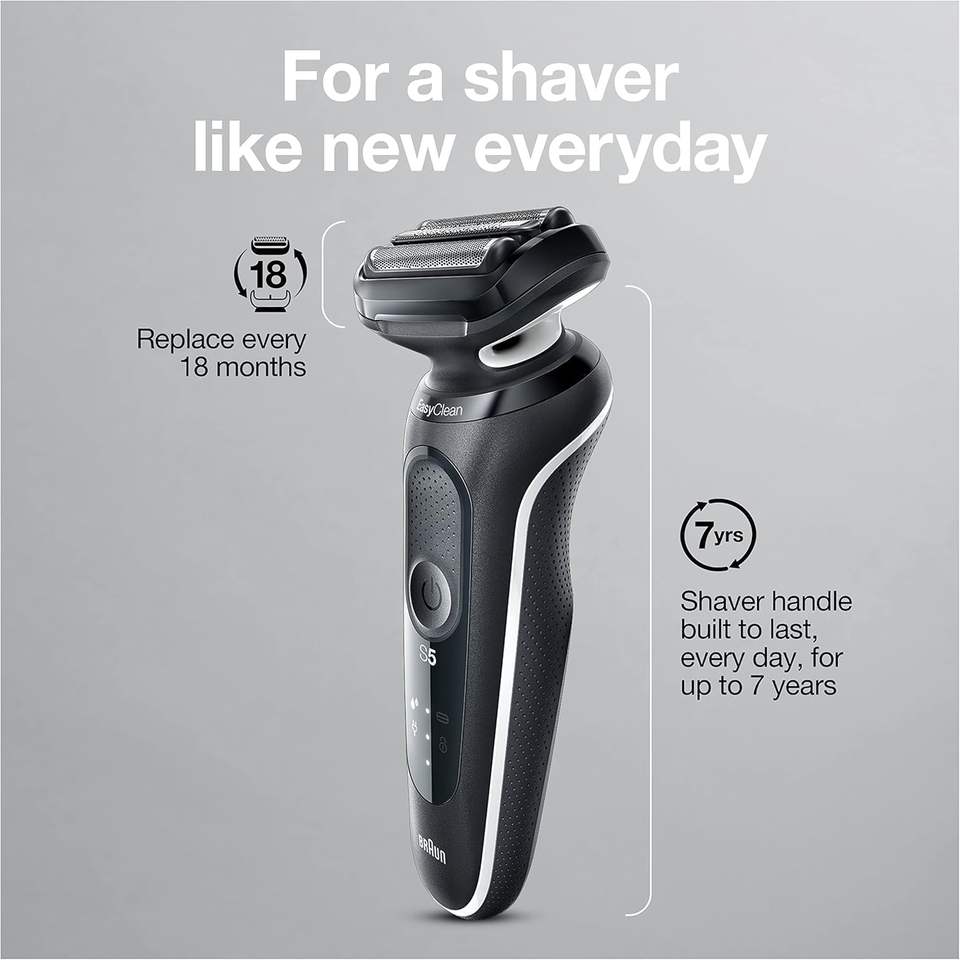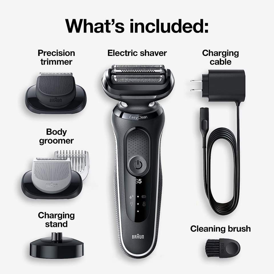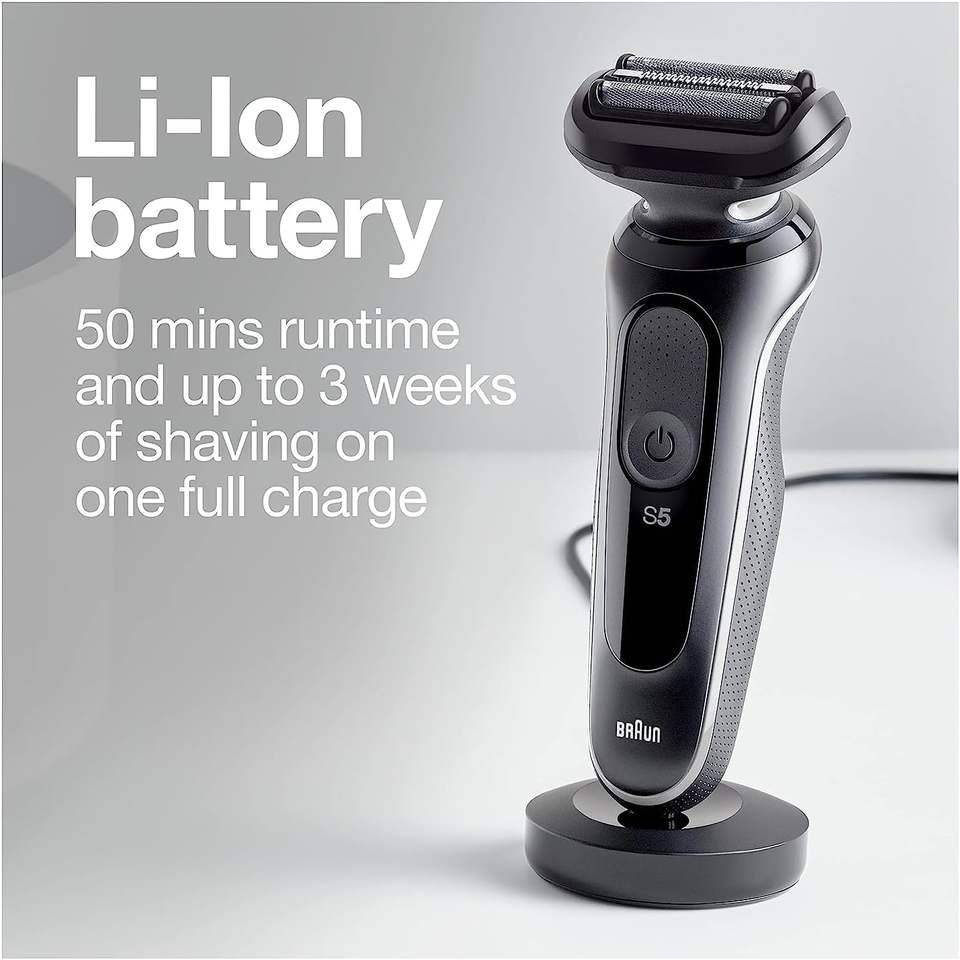 Afeitadora Eléctrica Braun para Hombre, Afeitadora de Lámina Resistente al Agua, Serie 5 5050cs, Afeitado en Seco y Húmedo, Recargable, Base de Carga Incluida