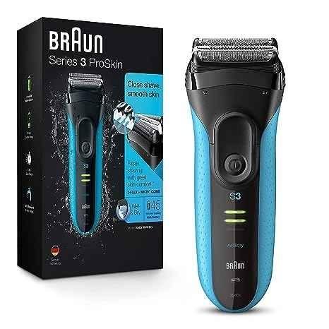 Braun Electric Series 3 Razor con recortadora de precisión, recargable, afeitadora de lámina húmeda y seca para hombres, azul/negro, 4 piezas