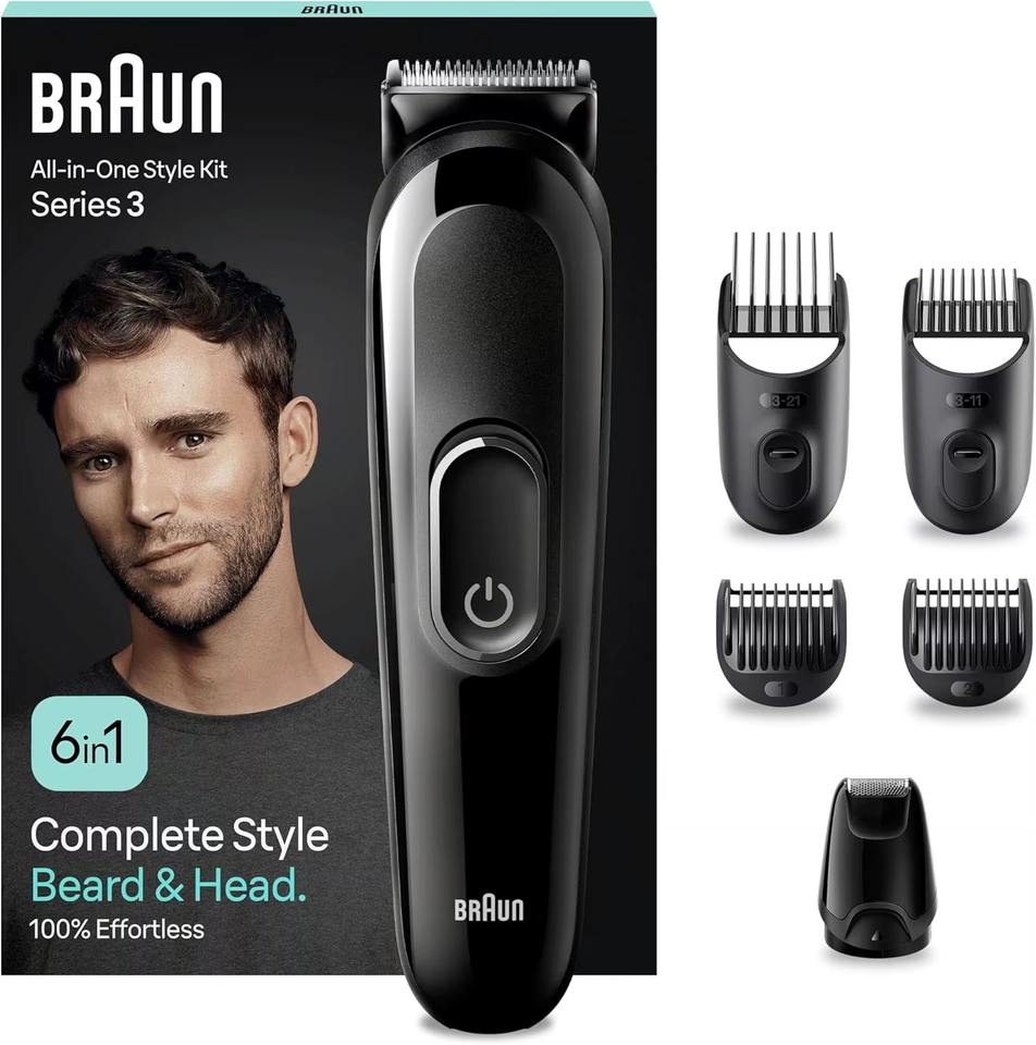 Kit de Aseo Braun MGK3420 Serie 3 6 en 1, Recortadora de Barba, Cortadora de Pelo, Herramienta de Afeitado de Precisión para Hombres