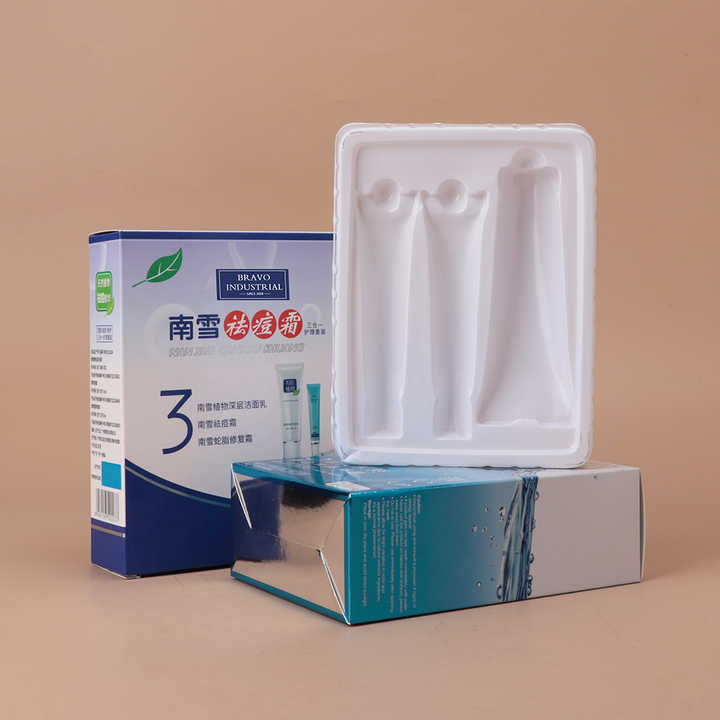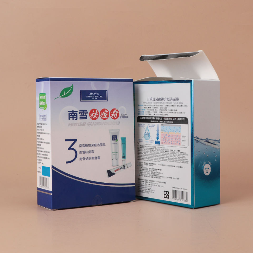 Fábrica de Empaques Bravo, Caja de Cartón Cosmética Plegable Impresa Personalizada con Inserto de Blíster, Empaque para Crema Facial y Mascarillas