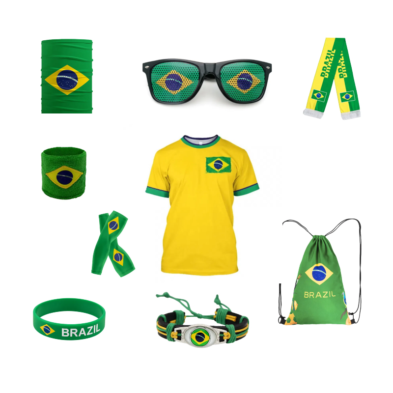 Juego de accesorios para fanáticos de la Copa de fútbol de Brasil, evento de juego de fútbol, productos de animación, regalo de fiesta de partidario con artículos promocionales