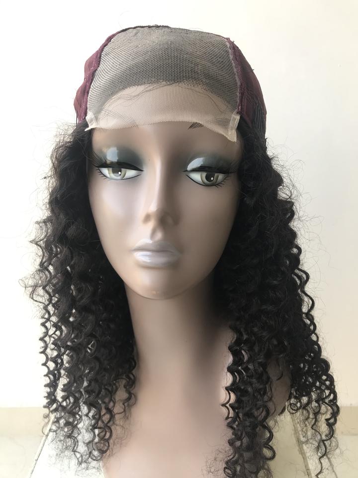 Nombre del producto:4x4 Cierre de encaje transparente Afro mongol profundo rizado Peluca de cabello humano