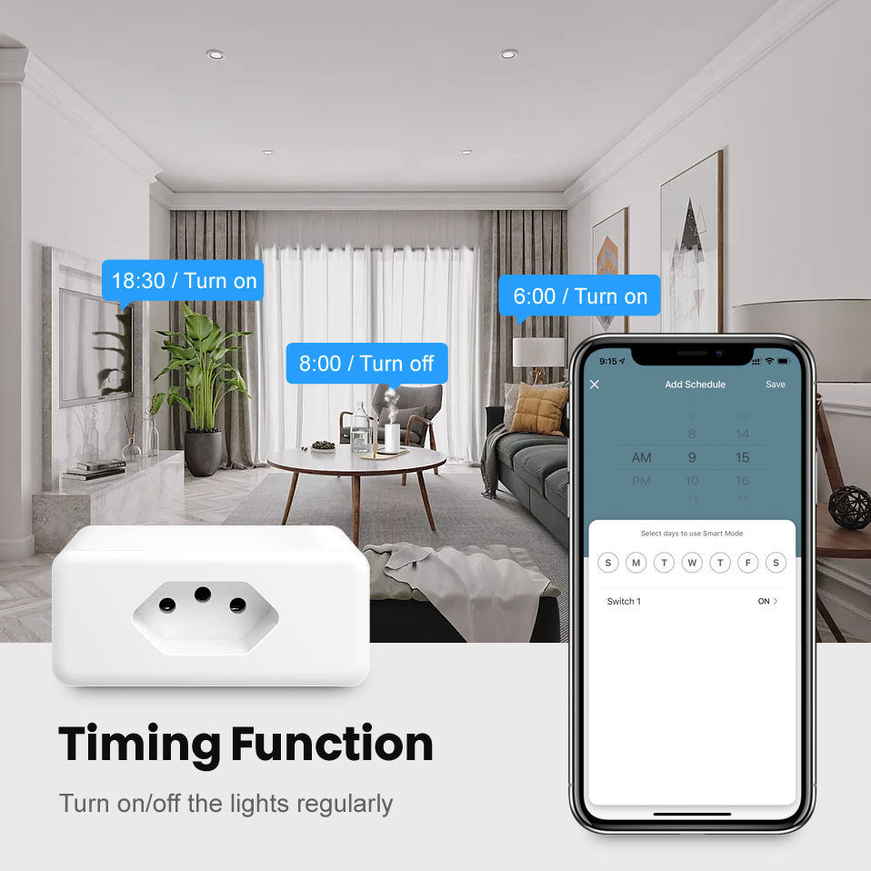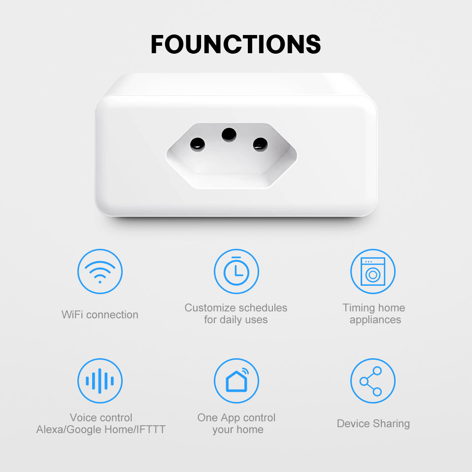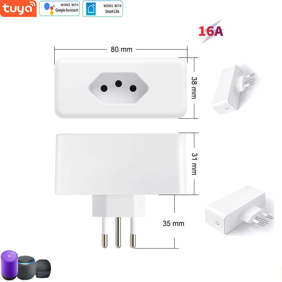 Brasileño Tuya Smart 16A Temporizado Control remoto Enchufe de pared Enchufe de Alimentación inteligente con conectividad de red WiFi