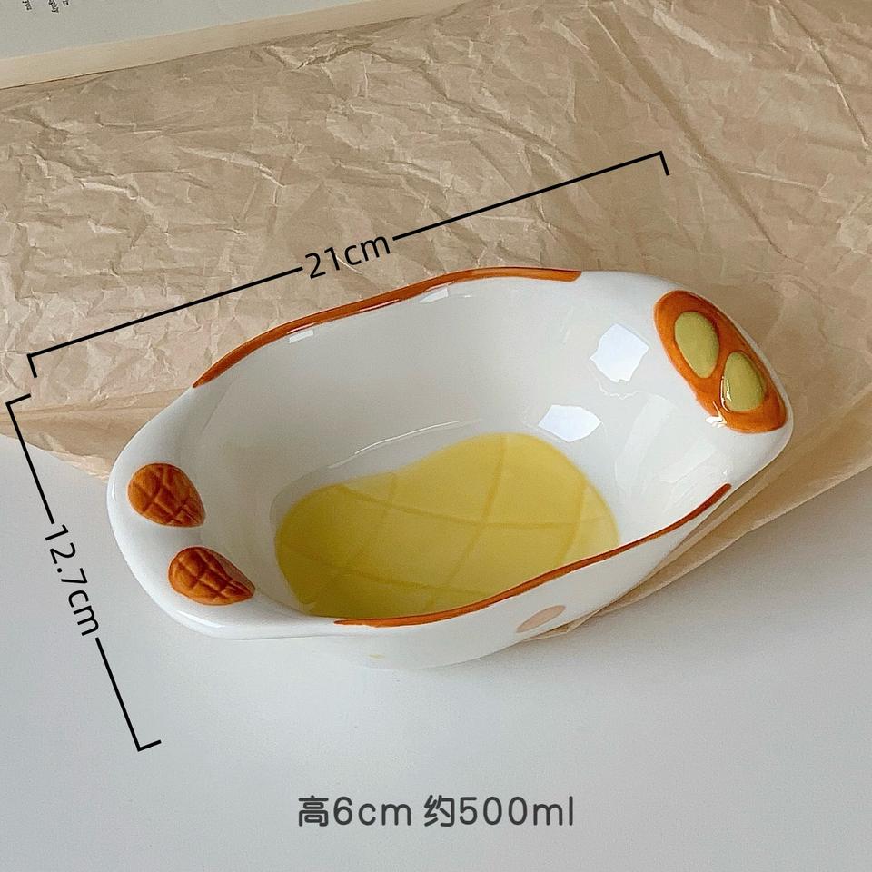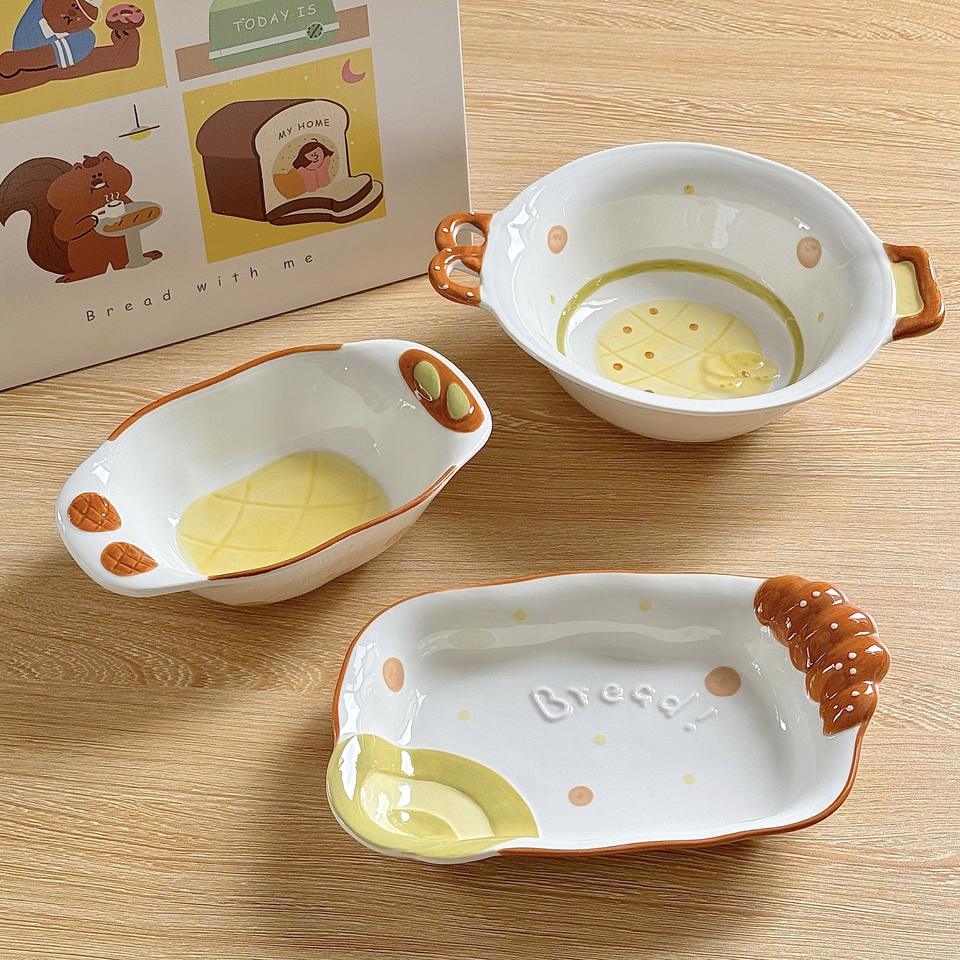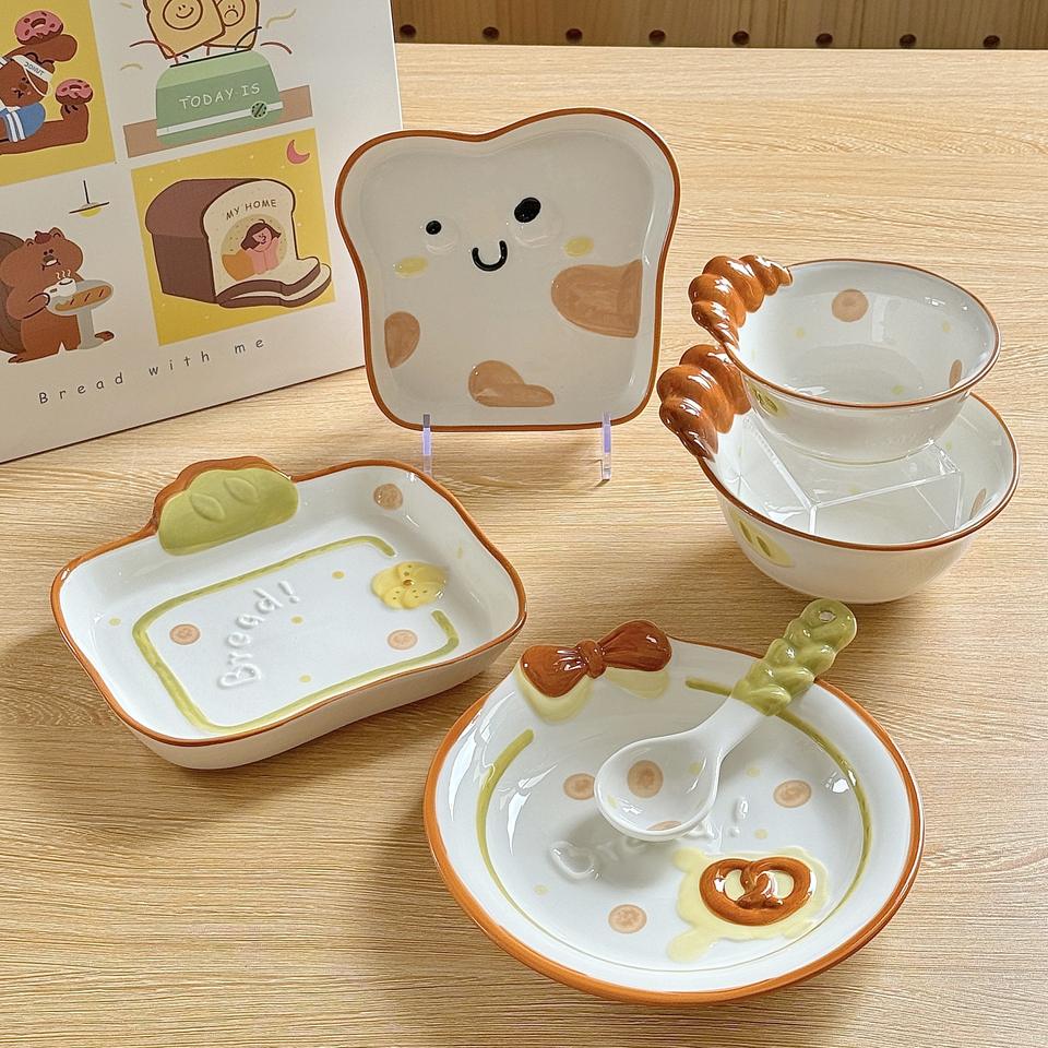 Vajilla de Cerámica con Diseño de Pan, Linda y Resistente a Altas Temperaturas, con Color Bajo Esmalte, Tazón con Diseño de Planta de Dibujos Animados para Postres y Galletas, para Fiestas Familiares