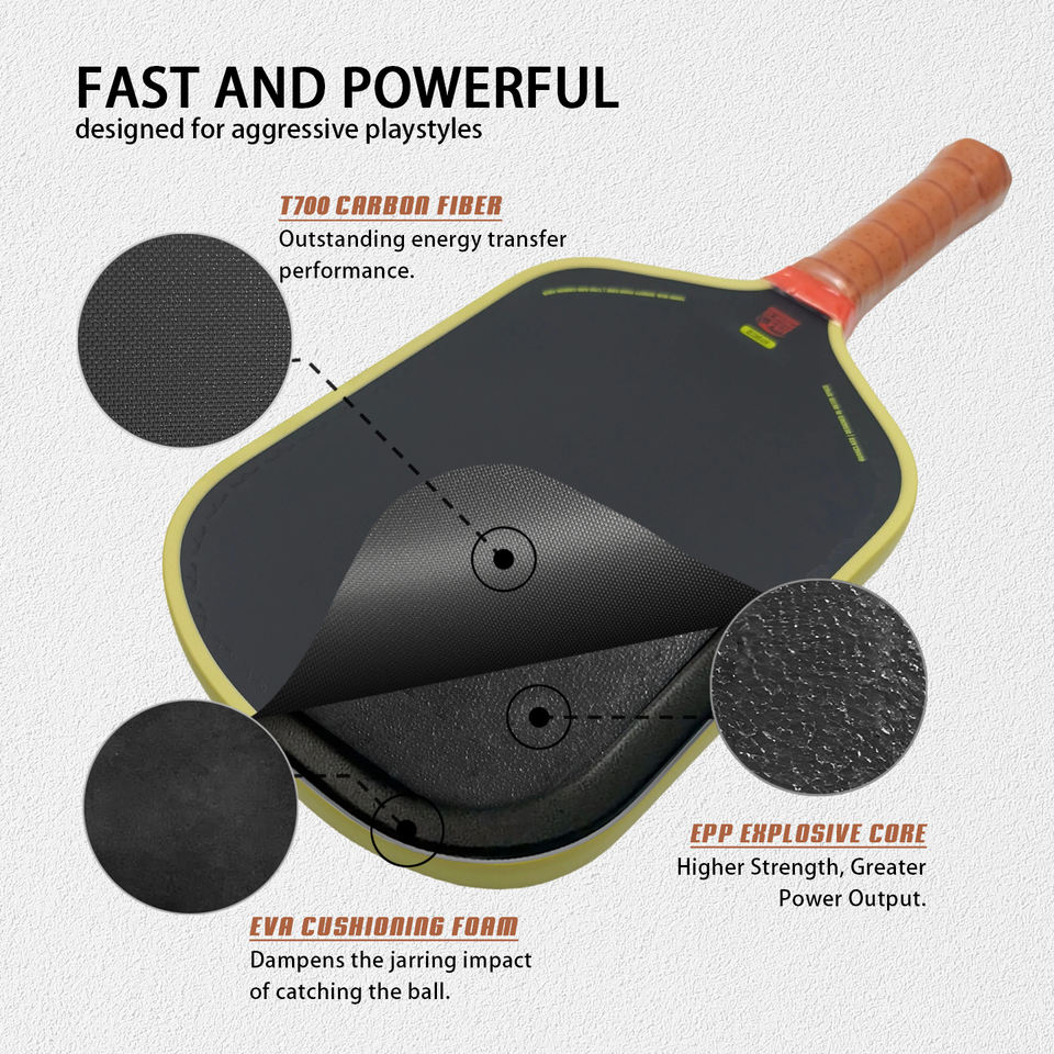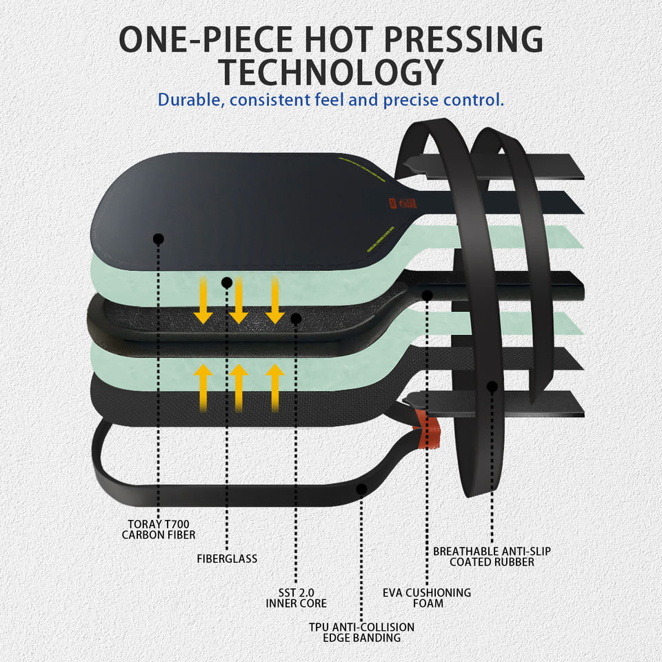 Fibra de carbono cruda T-700: Asegura alta durabilidad y resistencia, haciendo que la pala sea resistente al desgaste tras un uso prolongado.