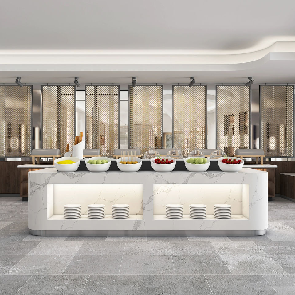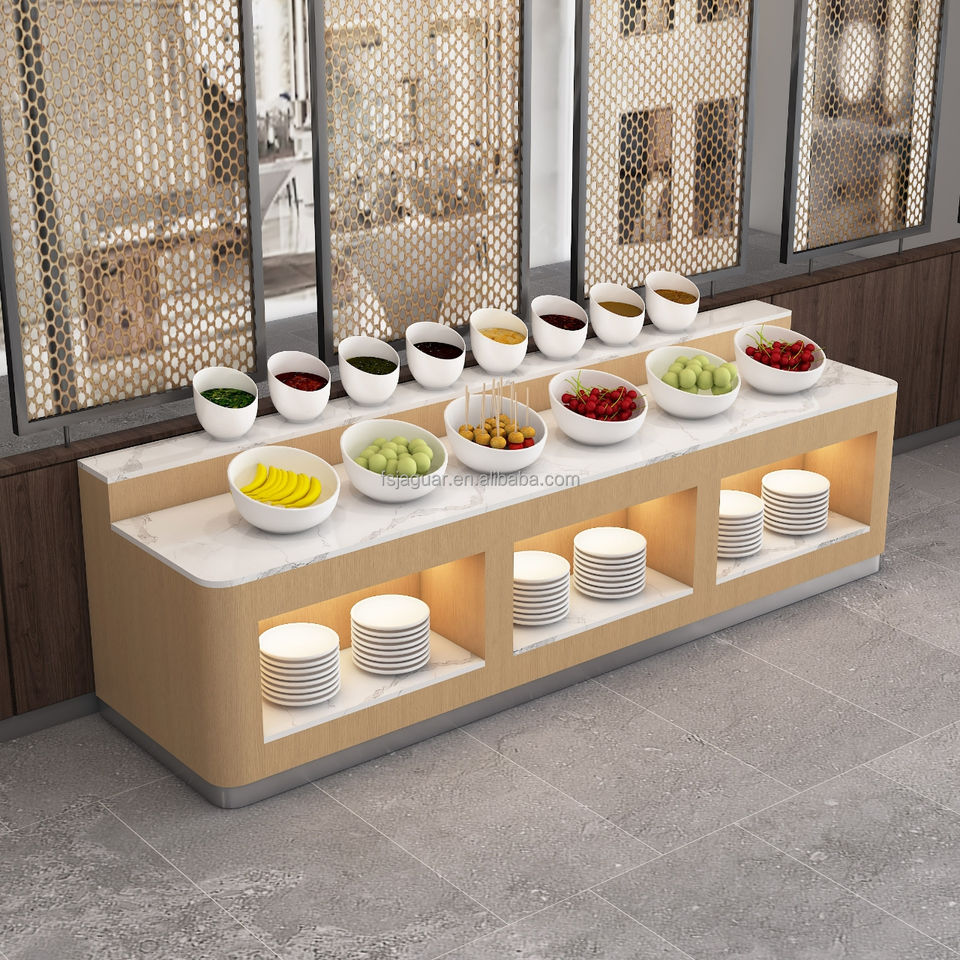 Exhibidor de Buffet para Desayuno, Vitrina para Pastelería, Diseño Moderno, Construcción de Madera Resistente para Hotel, Restaurante, Comercial