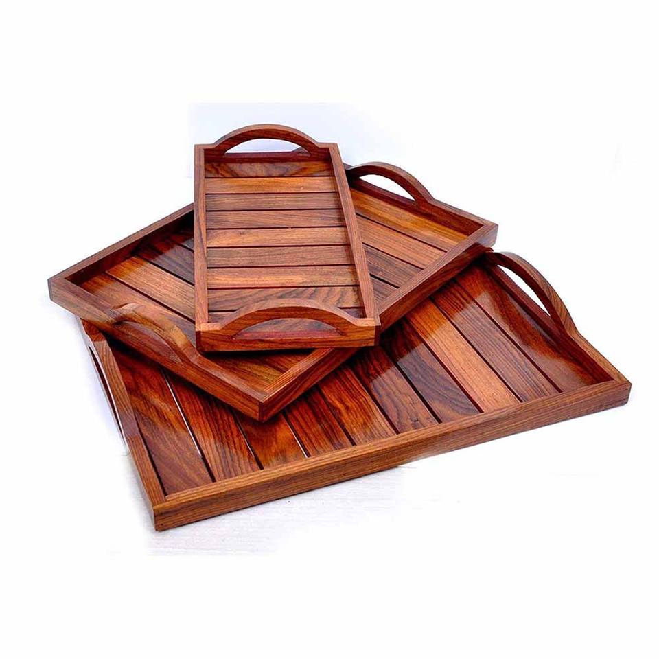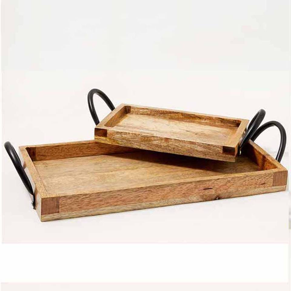Desayuno Decoración para el hogar Bandeja de servicio de madera rectangular marrón con asa para restaurante Hotel Fabricante y proveedor de India