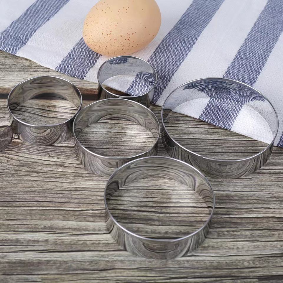 Breal-Juego de cortador de galletas redondo de acero inoxidable, conjunto de cortador de masa de pastelería circular de gran tamaño, molde de anillo de Metal para hornear pasteles redondos, 3 piezas